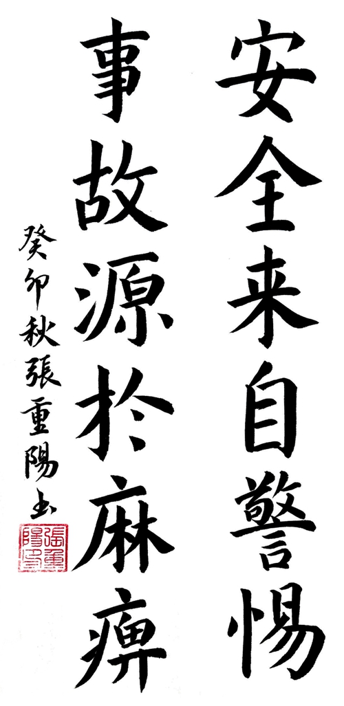 【百日清静生产行动】张重阳书法:警钟长鸣 平安是福