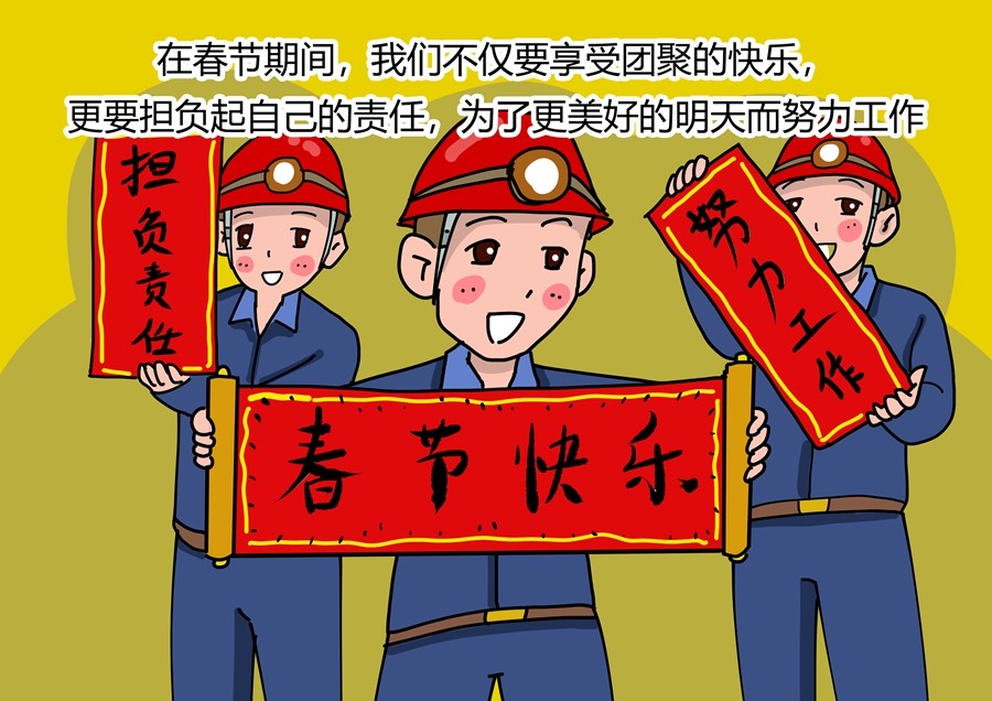 春节,因坚守而祥和,因贡献而温暖。当吉祥的灯笼高高挂起,守岁的炮竹响彻耳旁,万家灯火下的人们纷纷陶醉在团圆的喜悦中。然而,在矿山有这样一群最美“敬业者”,他们依然坚守岗位,用坚守化作优美祝福,以实干敲响新年钟声。他们舍小家顾各人,让多彩的春节化作最美的职责与信心。(胡家河矿 赵元)