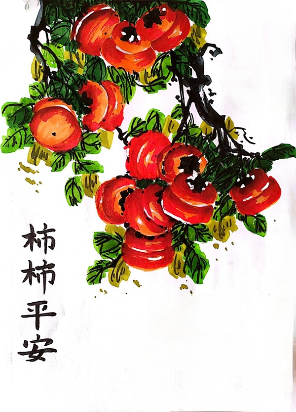 沈渊博绘画:柿柿如意